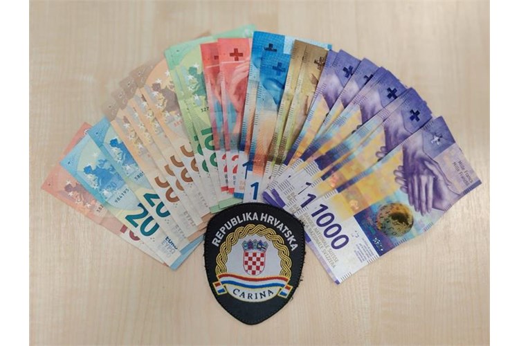 | 19. studenoga 2025. ovlašteni carinski službenici Službe za suzbijanje krijumčarenja i istrage i Područne jedinice Službe za mobilne jedinice Slavonski Brod, provodeći pojačane mjere nadzora u unutrašnjosti RH, na odmorištu Marsonia izvršili su pregled i pretragu autobusa makedonskih registarskih oznaka kojim je upravljao državljanin Republike Sjeverne Makedonije. Pregledom autobusa, u osobnim stvarima vozača pronađena je gotovina u iznosu 12.640,00 švicarskih franaka i 450,00 eura koju vozač nije prijavio na graničnom prijelazu Bajakovo prilikom ulaska u područje Unije. |