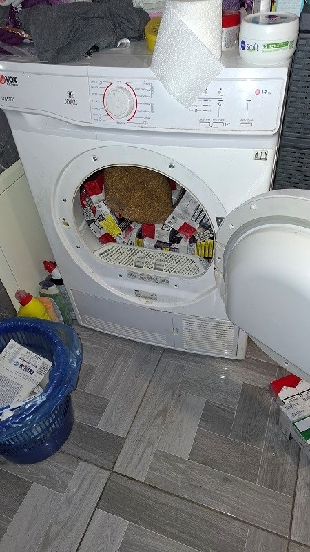 | 14. studenoga 2025. ovlašteni carinski službenici Područne jedinice Službe za mobilne jedinice Varaždin u mjestu Beretinec izvršili su pretragu obiteljske kuće kojom prilikom je pronađeno 17,20 kg sitno rezanog duhana i 38.600 komada raznih vrsta cigareta, sve bez duhanskih markica Ministarstva financija Republike Hrvatske na koje nije na zakonit način obračunata i plaćena trošarina i za koje se ne može dokazati pravilnost stjecanja i posjedovanja. Okrivljenoj fizičkoj osobi izdat će se prekršajni nalog na iznos novčane kazne od najmanje 12.000,00 €, a nadležnom Područnom carinskom uredu bit će podnesen Zahtjev za naplatu trošarine u iznosu od 7.424,40 €. Roba je oduzeta. |